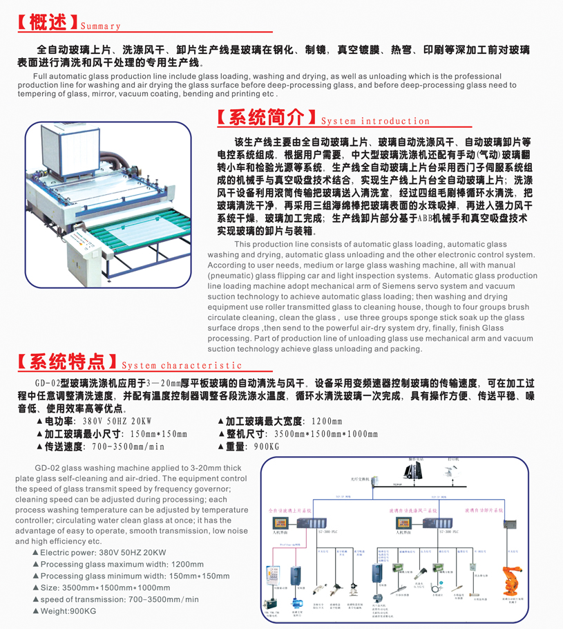 全自動玻璃上片—洗滌-風干-卸片生產(chǎn)線